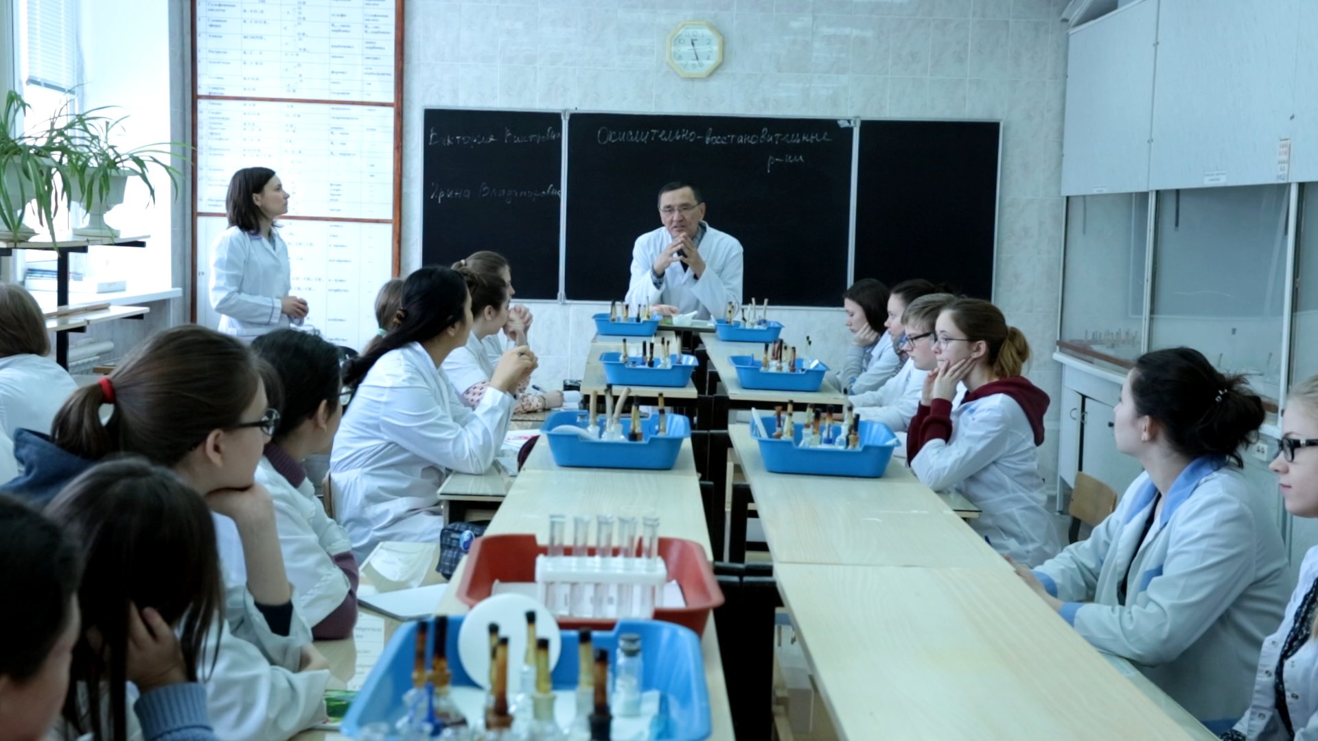 Далее ребят отправили на пары, разделив по направлениям: «биология», «техносферная безопасность», «пожарная безопасность», «фундаментальная и прикладная химия», «экология и природопользование». Как самые настоящие студенты будущие абитуриенты знакомились с профессиями, узнавая для себя много нового и интересного. Они работали с микроскопами, учились оказывать первую медицинскую помощь при кровотечении, делали опыты с кислотами и т. д.