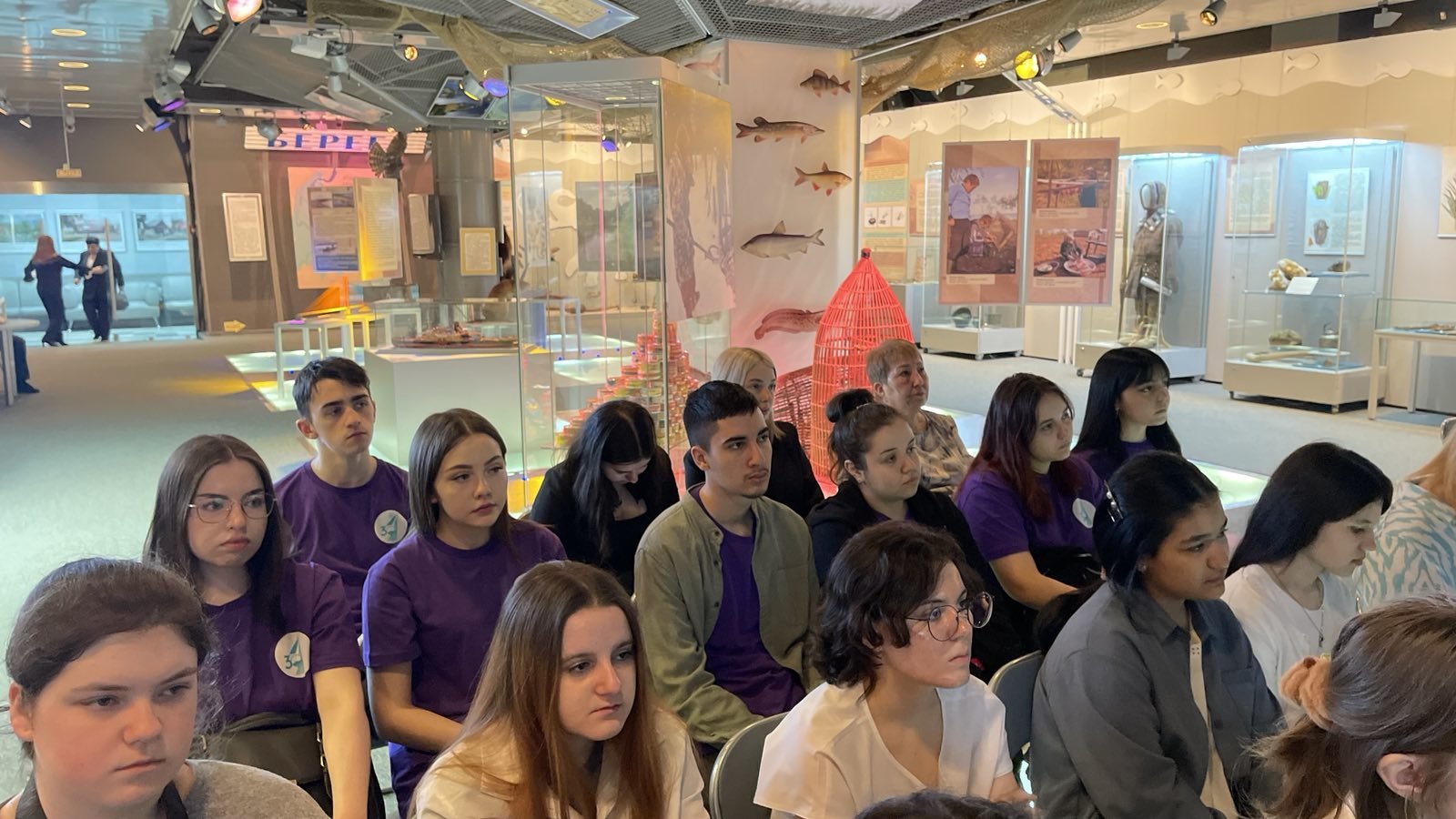 Волонтеры Дьяченко Мария, Рыбалко Виктория, Исмаилов Вадим, Сейфуллаева Ханымгюль, Курбанова Варвара, Зайнагутдинова Аделя, Исмаилова Макселима, Миндов Валерий, Пушкарёва Софья помогали в организации встречи и с помощью интерактивной программы побывали в прошлом города Сургута.