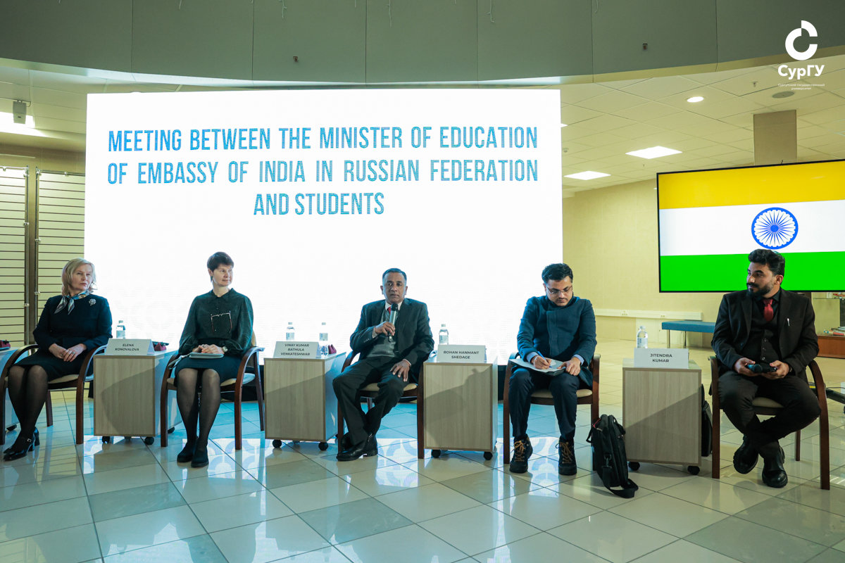 Министр по вопросам образования Посольства Индии Винай Кумар Батхула Венкатешвар принял активное участие в обсуждении вопросов, связанных с пребыванием студентов из Индии в Сургуте и их обучением в университете.