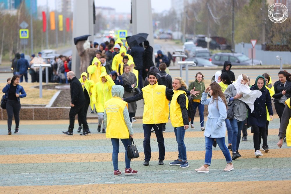 Несмотря на дождь и порывистый ветер, благодаря выступлению творческих коллективов Сургутского государственного университета митинг получился ярким и красочным.