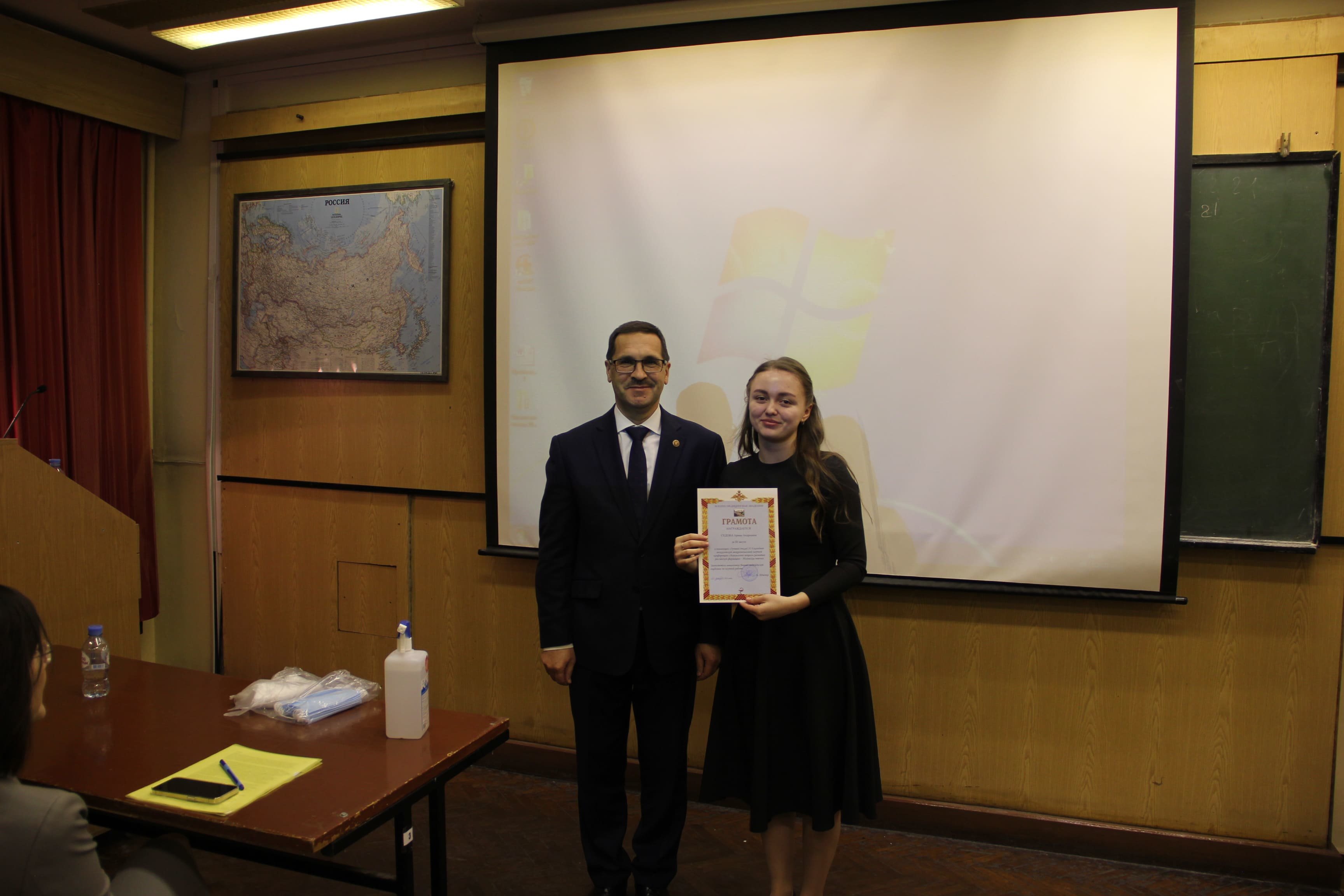 Доклад, с которым выступила Арина, был посвящен передовым фармацевтическим и медицинским технологиям в патогенетической коррекции кровотечений из варикозно-расширенных вен пищевода у служащих с циррозом печени, проживающих и выполняющих служебные задачи в особых климатических условиях. «Целью моего научного доклада было оценить эффективность использования лекарственного препарата Терлипрессина для коррекции и профилактики массивных кровопотерь при оказании экстренной медицинской помощи служащим в ведомственных медицинских учреждениях Федеральных органов исполнительной власти (ФОИВ). В ходе исследования мы пришли к следующим выводам: комплексное использование селективного агониста вазопрессиновых рецепторов Терлипрессина совместно с донорскими компонентами крови в остром периоде кровотечения позволяет своевременно снизить массивность кровотечения; снизить число развития повторных кровотечений; уменьшить смертность. Представленная методика остановки кровотечений может быть использована при оказании неотложной медицинской помощи у служащих ФОИВ, выполняющих служебные задачи в особых климатических условиях Крайнего Севера», – рассказала Арина Седова, поблагодарив директора Медицинского колледжа Елену Бубович, своего научного руководителя Олега Руденко, преподавателя Евгения Павловского за помощь и поддержку в процессе подготовки работы.