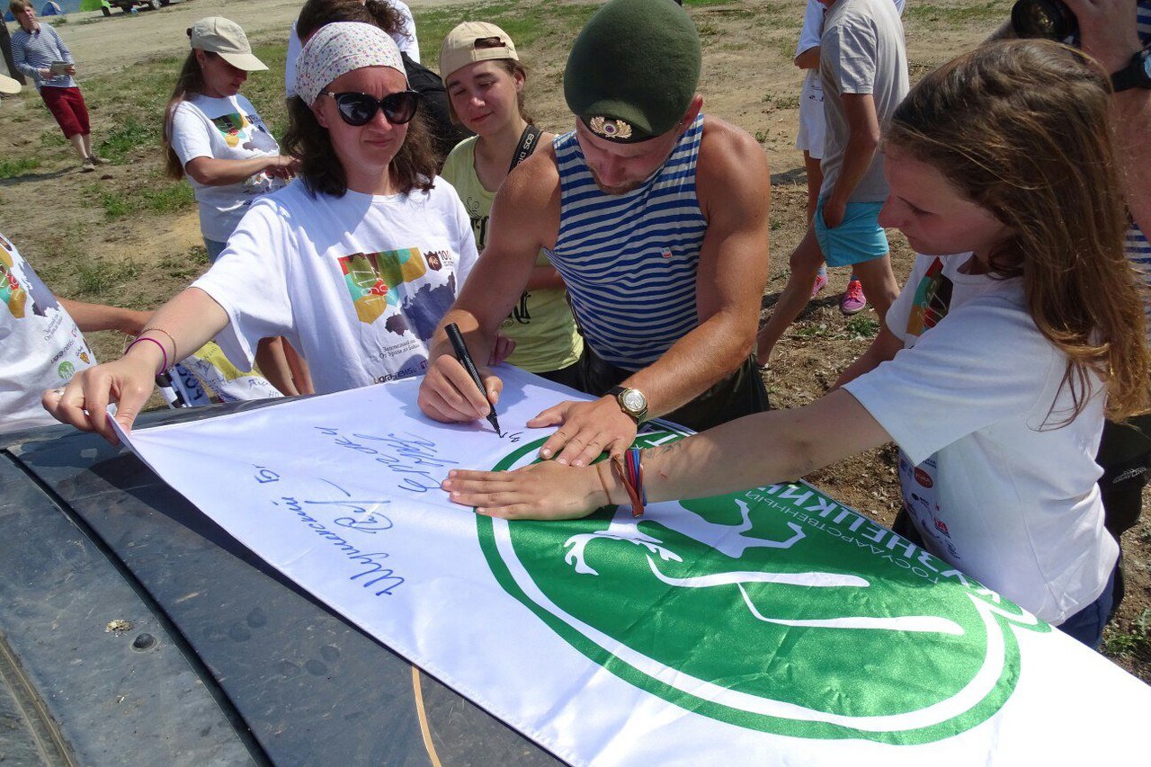 На протяжении всей экспедиции у нас была традиция: директора заповедников и национальных парков оставляли автографы на флагах. Так вот, на закрытии один из флагов торжественно передали в Забайкальский национальный парк.