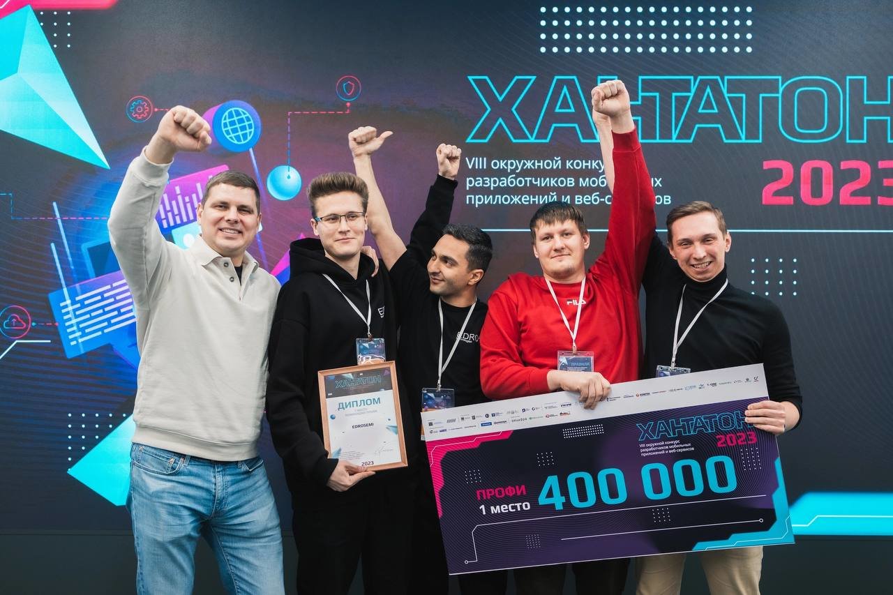 Команда Сургутского государственного университета «EDROSEMI» заняла первое место на VIII окружном конкурсе разработчиков мобильных приложений и веб-сервисов «Хантатон-2023» в категории «Профи». Проводился конкурс на базе кампуса «Школы 21» в Сургуте с 25 по 26 ноября.